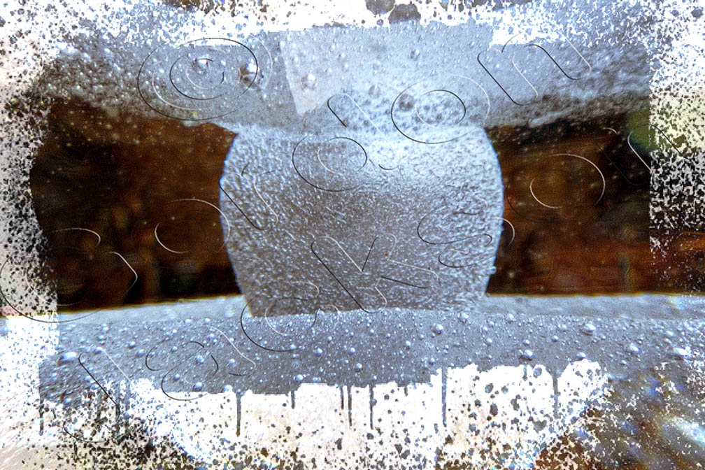 Recently, we had some heavy snowfalls here in the village, followed by freezing conditions. The image below is a photograph of ice which had somehow created a bubble like surface. The ice was about 1 inch thick, (25.4cm).
